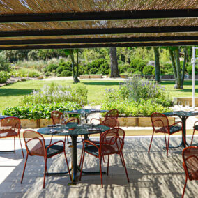 À l’ombre des arbres ou face aux perspectives du jardin, le moment devient presque suspendu.