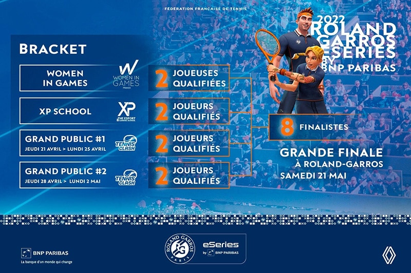 En plus du passage sur le jeu vidéo mobile Tennis Clash, la FFT a décidé de collaborer avec l’association Women In Games France pour organiser une étape de qualification réservée aux femmes afin de renforcer la féminisation de l’esport et de leur garantir deux places pour la Grande Finale.