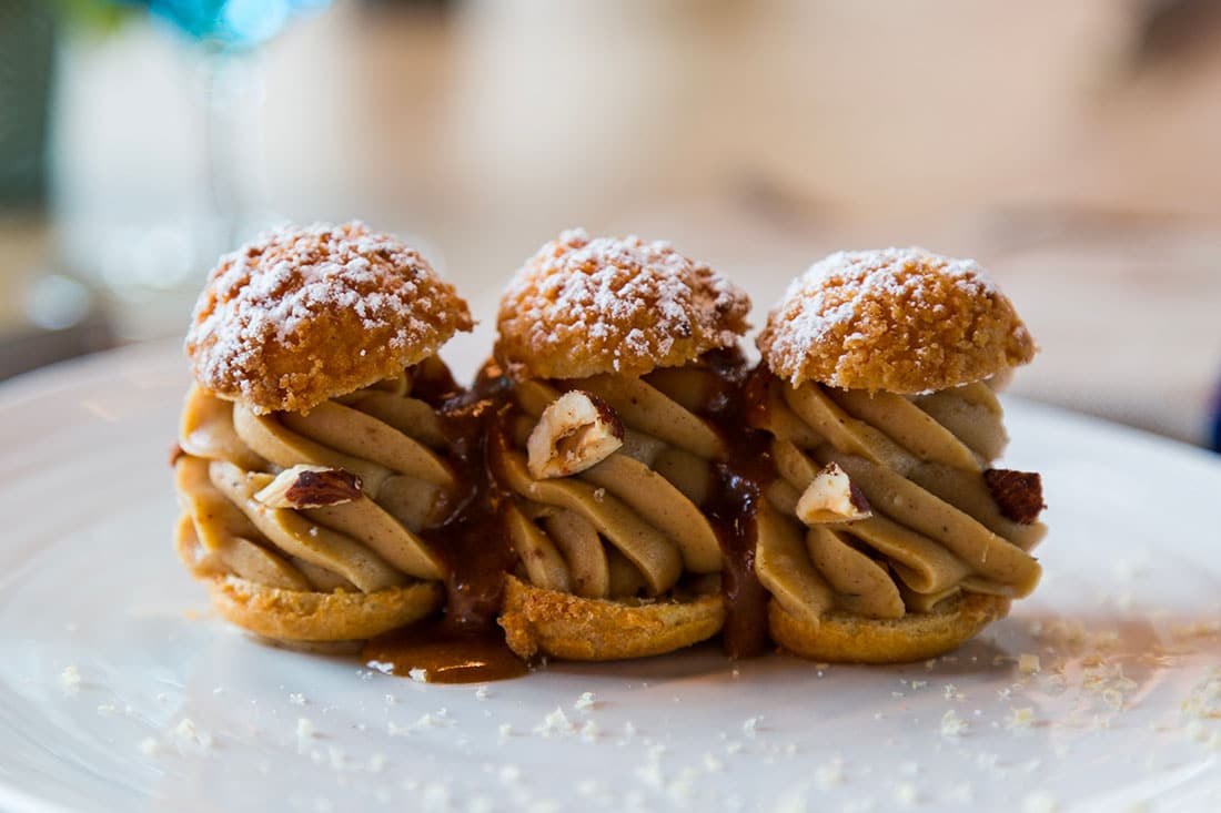 Au Paris-Brest, le chef Christian Le Squer s’attache à revisiter la cuisine bretonne traditionnelle entre terre et mer. La carte change tous les trois mois afin de respecter le rythme des saisons. Les produits du terroir sont travaillés de façon audacieuse, à l’image des viandes locales. En entrée, vous pouvez ainsi goûter au pâté en croûte de volaille et foie gras, tout en élégance. Poursuivez avec le plat signature du restaurant, la poitrine de cochon breton. Confite durant 36 heures, la viande est ensuite caramélisée à la sauce soja puis saupoudrée de graines de sésame. Vous préférez les produits de la mer ? Les noix de Saint-Jacques à cru au yaourt et citron confit et la lotte à l’Armoricaine servie avec riz sauvage aux algues devraient vous séduire. Côté sucré, nous vous recommandons le dessert signature, le Paris-Brest contemporain. Sa particularité : il est revisité sous la forme de trois choux montés minute garnis d’une savoureuse crème pralinée. Un vrai régal ! Ces plats et douceurs de caractère sont sublimés par une carte de vins créée par Éric Beaumard, vice-meilleur sommelier du monde et chef sommelier du George-V à Paris.