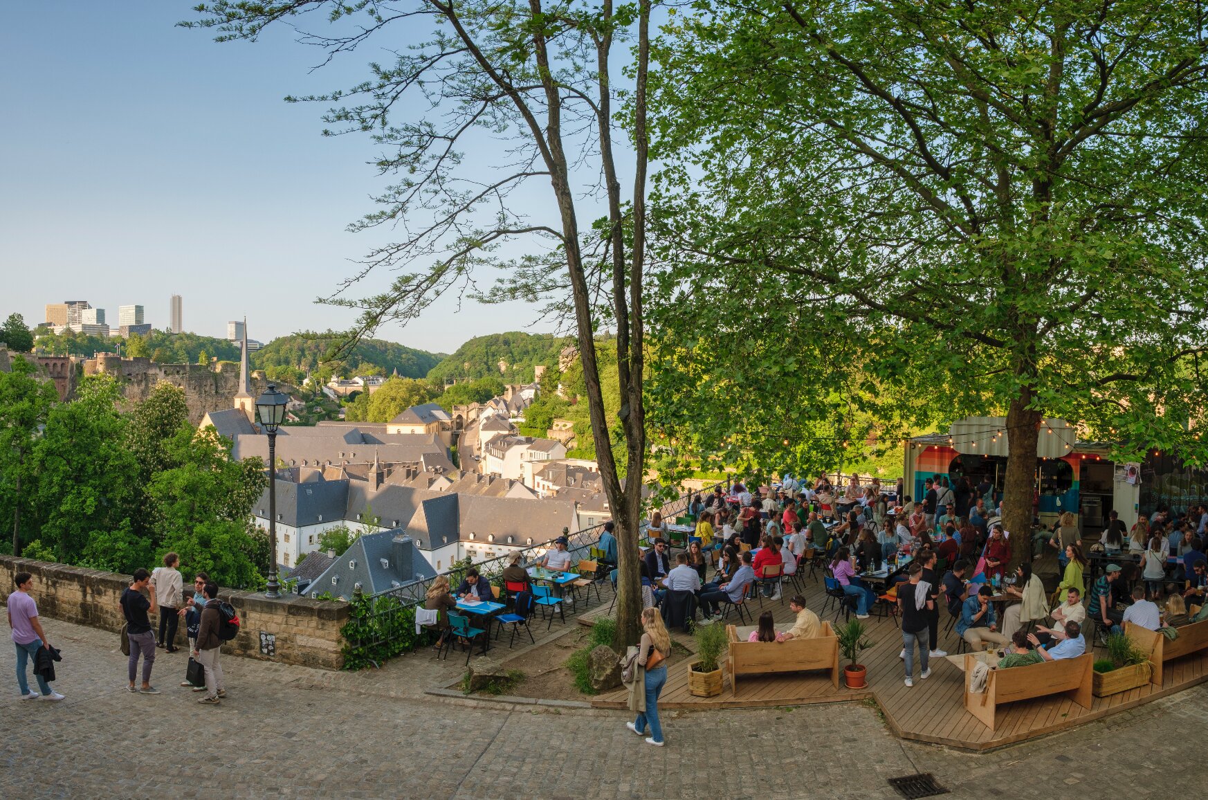 En se promenant sur la corniche, on comprend très vite ce qui a motivé l’écrivain luxembourgeois Batty Weber à parler du « plus beau balcon d’Europe ». Depuis la muraille de l’ancienne forteresse, le regard glisse vers le quartier du Grund et l’ancienne abbaye de Neumünster. L’idylle à l’état pur. En pleine ville.