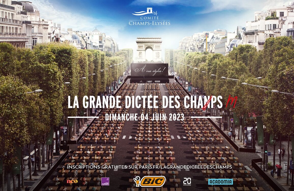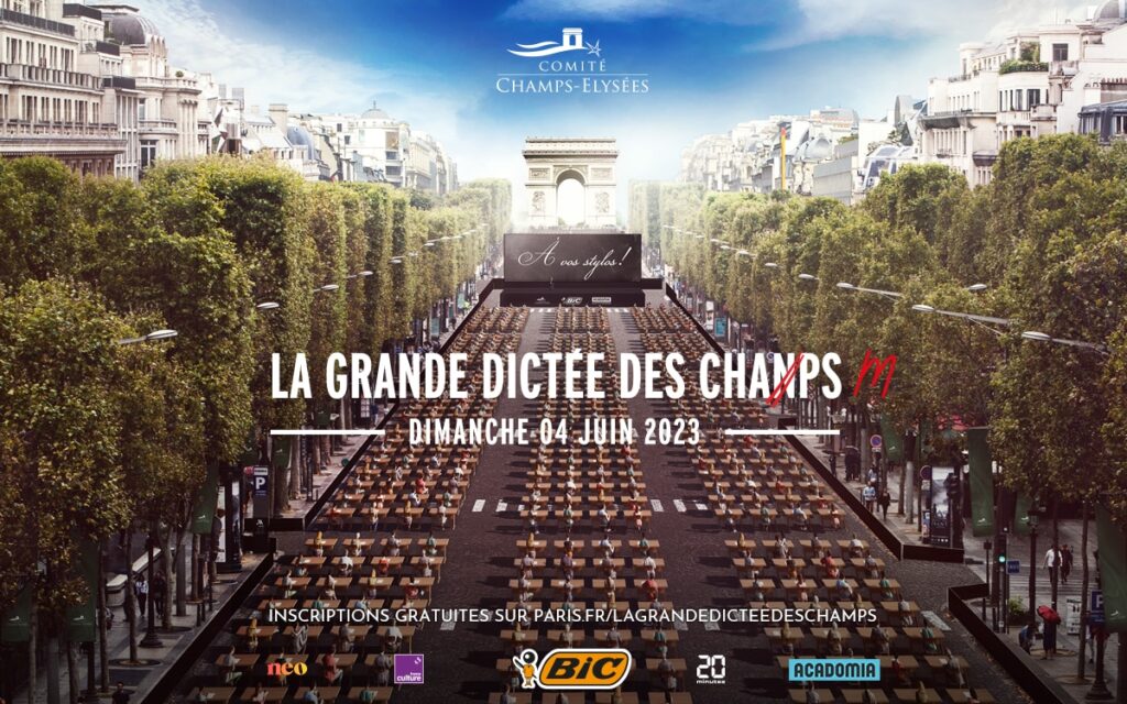 Le 4 juin prochain, la « plus belle avenue du monde » sera le théâtre d’un événement d’une envergure inédite : la Grande Dictée des Champs. Plus de 5000 participants sont attendus ce qui pourrait bien en faire la plus grande dictée du monde.
